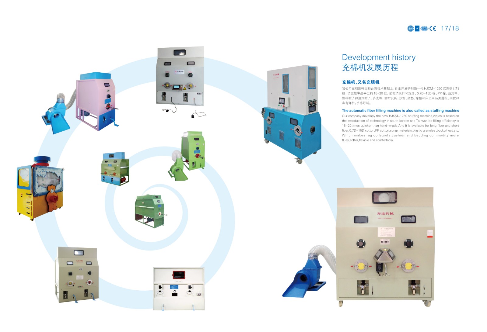 HJCM-1250型充棉機(充填機)是我司融合韓國及臺灣先進技術自主研發的高效填充設備,專為布藝玩具、家居軟裝、床上用品等行業設計。本機可快速充填PP棉、短纖維、泡沫粒子、蕎麥殼等多種材料,填充效率達人工操作的15-20倍,顯著提升產品蓬松度與舒適性,是現代化生產的理想選擇。